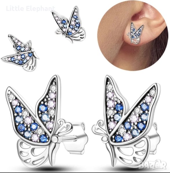 Дизайнерски модел сребърни обеци Пандора пеперуди с кристали,колекция"Butterflies"/ → Обява 42139809
