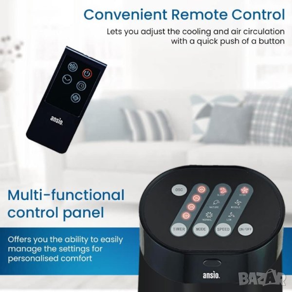 Вентилатор Ansio 1125 45W Колонен вентилатор 3 степени Дистанционно управление Таймер