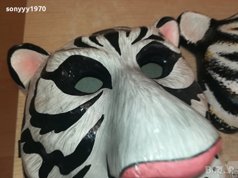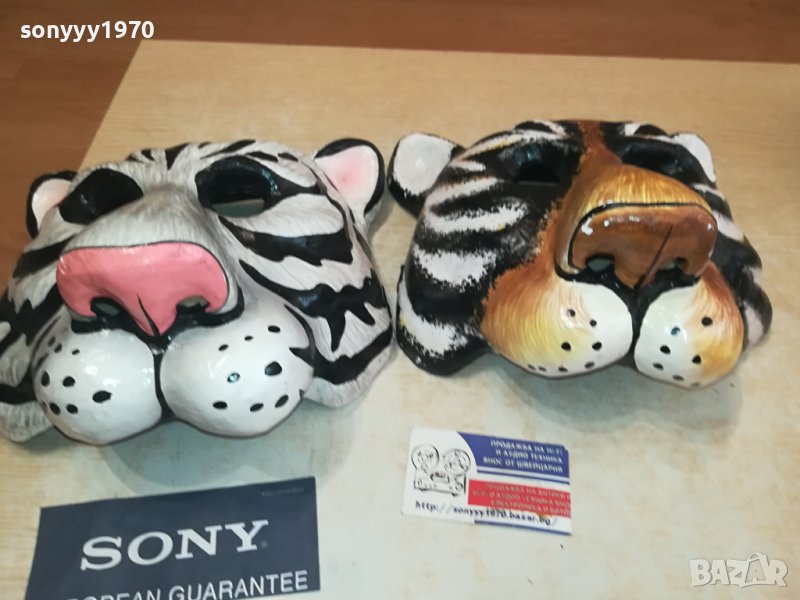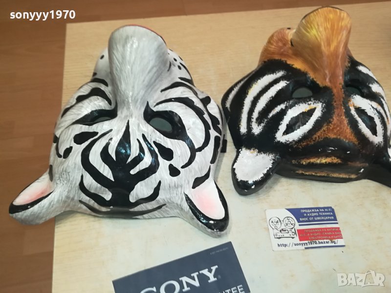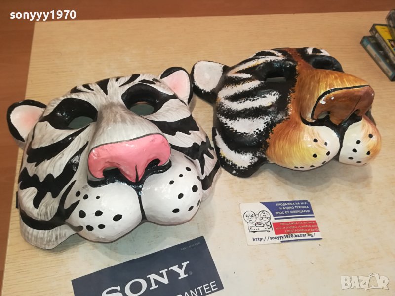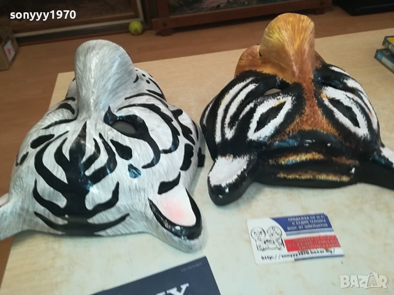 25Х25Х15СМ-БЯЛ ТИГЪР И КАФЯВ ТИГЪР-МАСКИ ЗА КОЛЕКЦИЯ ПОЛЗВАНЕ-СМОЛА ПЛЪТНИ С ЗАХВАТ ЗА ГЛАВА-КРАЙНИ ЦЕНИ.ПАЗАРЛЪЦИ НЕ! пращаме със спиди или еконт с преглед и тест след превод на капаро за куриерската услуга поради зачестили некоректни потребители-поръчки само тук в саита! по телефона и със смс не! краини цени! бартери не правиме! ПАРИ НЕ ВРЪЩАМЕ! всеки ден нови неща-още 2-3 наши обяви тук