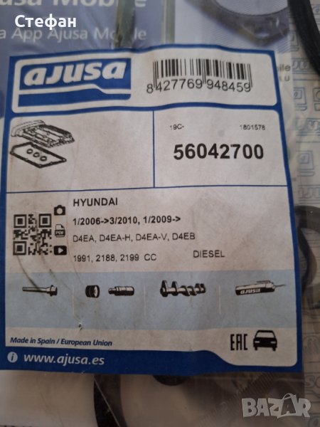 Гарнитура за капак клапани комплект, данните ги има на снимката, номера 56042700, ЗА ДВИГАТЕЛИ С КОД: D4EA, D4EA-H, D4EA-V, D4EB
