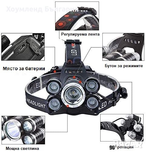 Супер мощен LED челник с ротационен фокус и 4 режима на осветяане: