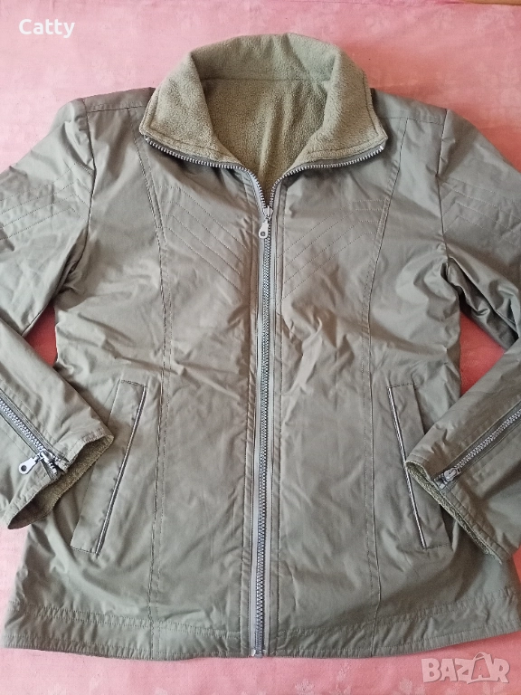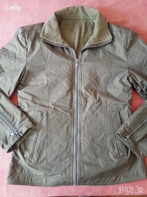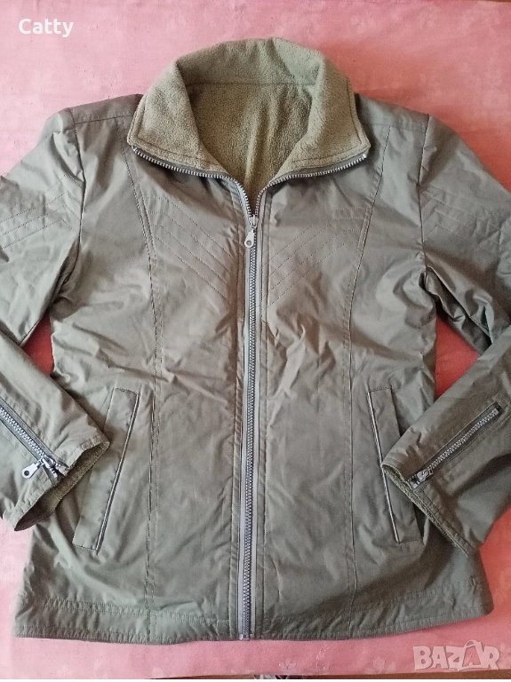 Дамско зелено шушляково яке с подплата, подходящо за есен и пролет,размер С, широчина 49см/дьлжина 62см, дьлжина на ръкава 59см,почти не е носено, с две лица,перфектно състояние!!