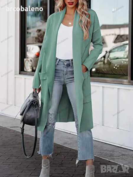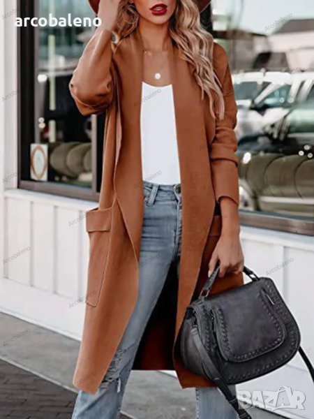 Дамско дълго тънко палто с големи предни джобове, 5цвята