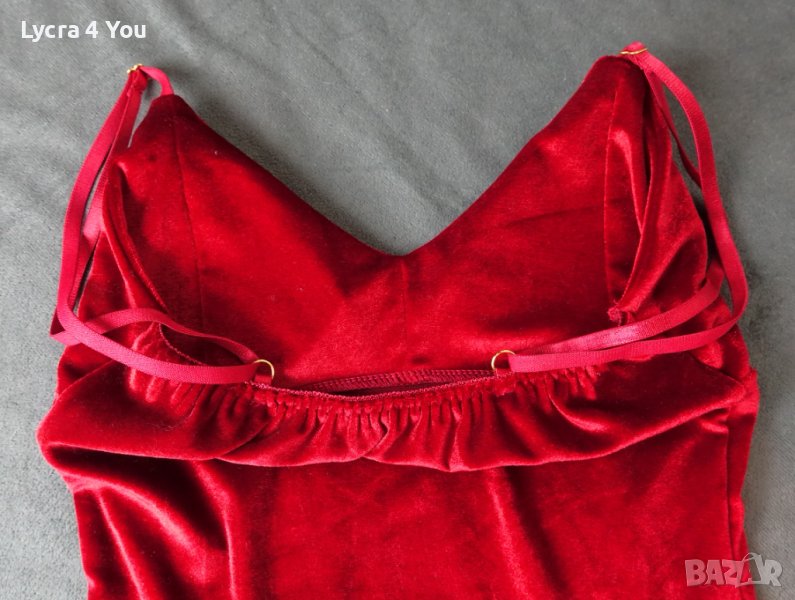 Неразличимо от ново, еротично червено кадифено боди с тик так закопчаване и памучно дъно. С вградени черни ластички за поставяне на жартиерени коланчета и възможност за слагане на чорапи към тях (продава се във вида на снимките - без жартиери и чорапи, но могат да се добавят такива и цената ще се промени).