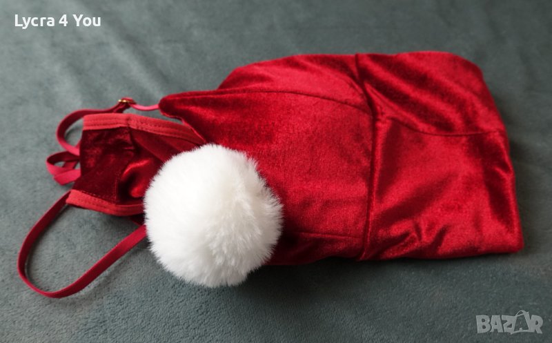 S секси червено кадифено боди с бяла пухкава заешка опашка
