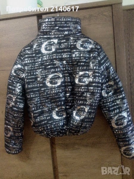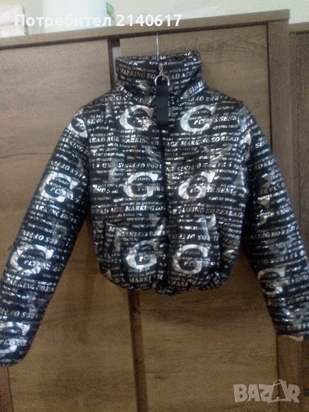 Ново яке със сребърен принт; закопчаване - цип; два джоба; ПОД МИШНИЦИ--56см ;ДЪЛЖИНА-56см; Рамена-42см; Ръкав-60см. С преглед.