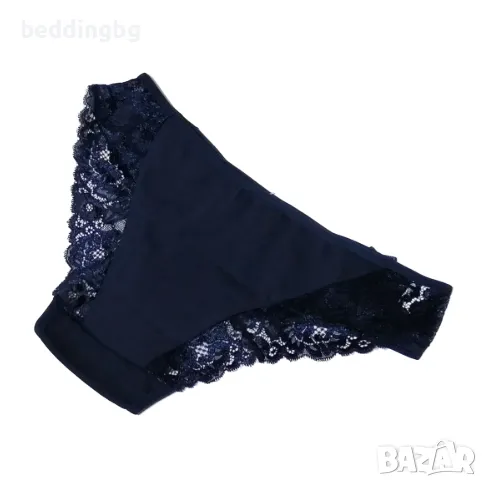 Дамски памучни бикини с дантела – тъмно синьо, Ивон