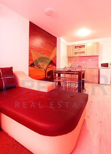 Имоти ПРЕМИЕР представя на Вашето внимание двустаен апартамент в гр. Балчик. Разположен в затворен комплекс, изграден изцяло в артистичен стил на територията на който можете да се насладите на розова градина, външен басейн с минибар, красиво аранжиран двор и много други удобства! Апартаментът се състои от антре, всекидневна с оборудван кухненски бокс, спалня, тераса, комбиниран санитарен възел. Жилището е просторно и светло, предлага се с наличното обзавеждане.