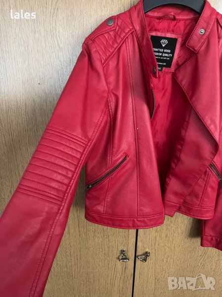 Детско кожено яке в отлично състояние, еко кожа,висок клас, алено червена. Закупено от Германия, носено много малко, видно от снимките.