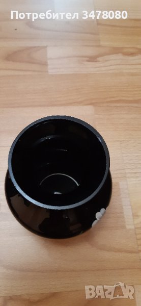 Рисувана стъклена ваза цвят черен. Височина 14 см.