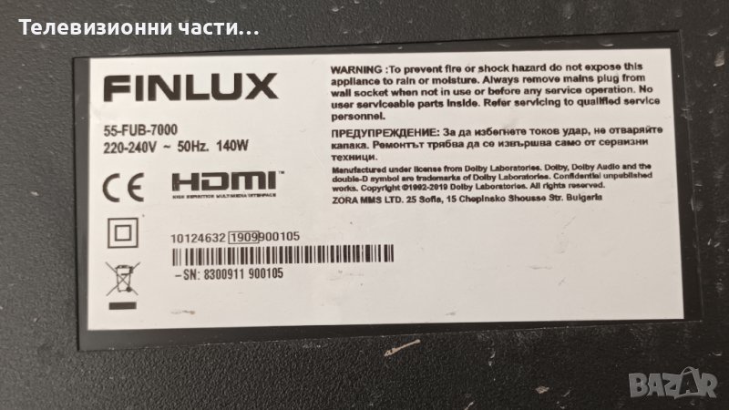Finlux 55-FUB-7000 със счупен екран VES550QNDL-2D-N13 - 17IPS72/17MB130S/6870C-0769A/17DLBNER1-A/B