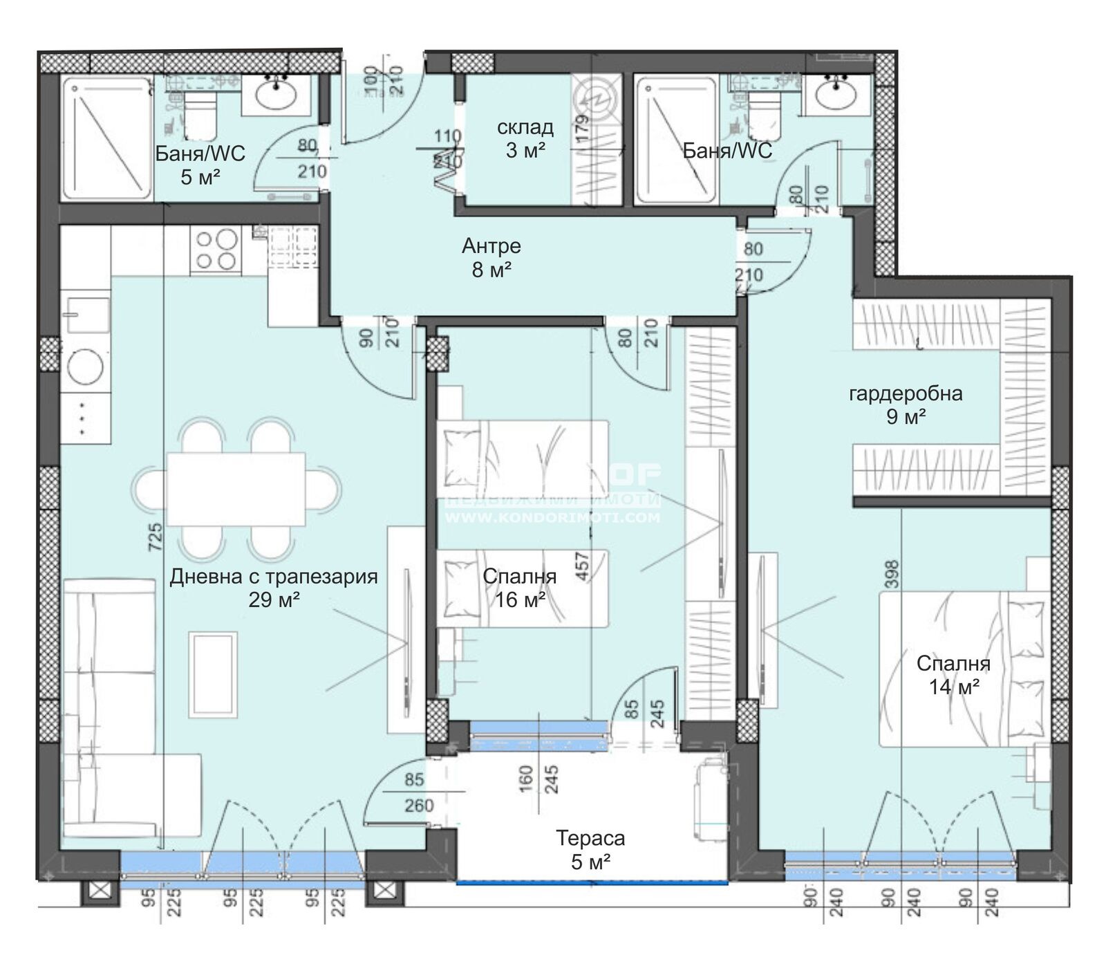 Оферта 62522: Прекрасни просторни жилища за продажба в НОВА СГРАДА в близост до търговски център, големи вериги магазини, паркове и учебни заведения! Новият жилищен комплекс се отличава с простор и открити гледки, контролиран достъп на автомобили и луксозно завършени общи части. Апартаментът, който Ви предлагаме, е просторен тристаен и се състои от светла дневна 29кв.м. с кухненски бокс и трапезария, две самостоятелни спални: родителска 14кв.м. със собствен санитарен възел и голям дрешник - 9кв.м. и детска стая 16кв.м., втора голяма баня с тоалетна 5кв.м., склад/перално, входно антре и една тераса. Жилищата са издадени на степен на завършеност, съобразно всички съвременни изисквания с блиндирана входна врата, под - циментова мазилка, тавани и стени - гипсова мазилка, електрическа инсталация до ключ и контакт, многокамерна PVC дограма, напълно завършени тераси и просторна стълбищна клетка, безшумен хидравличен асансьор. Към всеки апартамент се закупува подземно или надземно паркомясто или гараж. Гъвкава схема на разсрочено плащане с отстъпки при по-висока първоначална вноска. Осигурено банково кредитиране на специални условия за нашите клиенти от водещи банки.ВИЖТЕ ОЩЕ ИЗГОДНИ ОФЕРТИ НА https://www.kondorimoti.com/ С ЕЖЕДНЕВНА АКТУАЛИЗАЦИЯ!