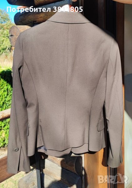 Сакото е вталено, от ефектна материя. Цветът е наситен шоколад, като на различна светлина леко се променя. Това се вижда и на снимките.