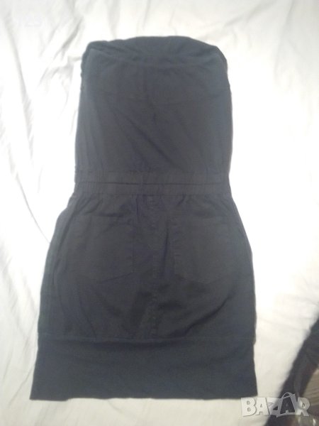 Отстрани има джобове за удобство, които не нарушават елегантната визия на роклята/сукман. Отзад също. На снимките заради светлината изглежда избеляла, но нито е избеляла отстрани, нито има петно в центъра, както се е получило заради светлината при снимане. Платът имитира тип дънков, но фин, не дебел и груб, а в областта на бюста и долу е еластичен памучен. Така е предвиден моделът в областта на бюста, за да го оема, независимо каква е обиколката му. В талията има ластик, за да очертае по-добре фигурата и без да се ползва колан. Гръдна обиколка– 78 см ( но се