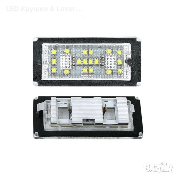Светодиодни плафони за регистрационен номер с изключително високо качество на изработка и перфектно пасване на мястото на стандартните. Плафоните са оборудвани с ярко светещи диоди, които ще осветят перфектно вашия регистрационен номер. Основните предимства на LED плафоните са: ниската консумация и ярката светлина. Ако търсите промяна, изискан вид, силна светлина и надеждност, LED плафоните със сигурност ще покрият всяко едно от тези изисквания. След заменянето на стандартните ви плафони с LED, вие ще получите добре разпрашена, ярка светлина. Ако забравите включени LED плафоните, ниската им консумация няма да изтощи акумулатора.
