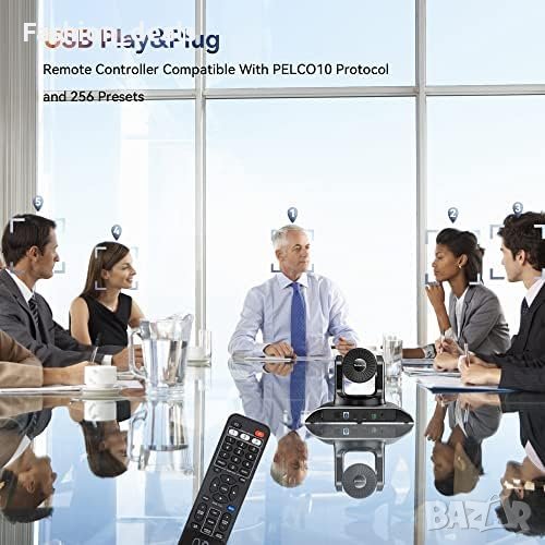 Дистанционно управление: Лесно управлявайте функциите на камерата, включително завъртане, накланяне, мащабиране и предварително зададени позиции.