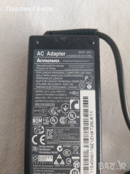 Оригинално зарядно захранване за лаптоп Lenovo 20V 3.25A , зарядно lenovo