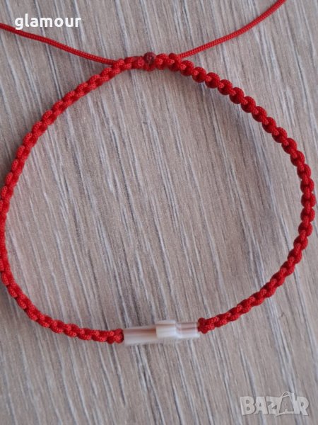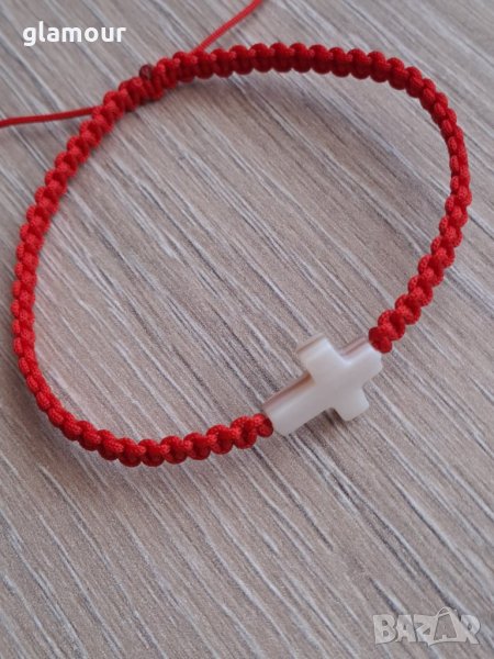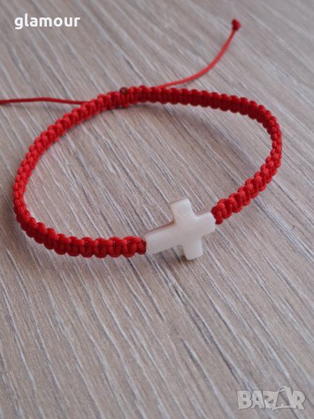Гривна амулет с червен шнур и седефено кръстче/12/15мм./