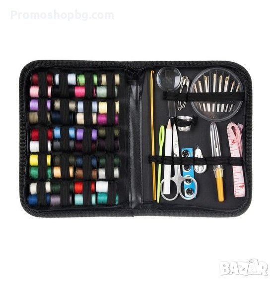 Комплектът конци и аксесоари ще бъде перфектен както за начинаещи, така и за напреднали. В него има всичко необходимо: конци, игли, ножици, шивашки метър, напръстник, безопасни игли и др.