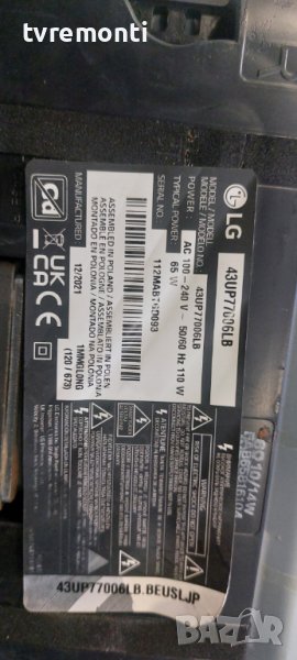 борда е гарантирано работещ Демонтиран от телевизор LG модел. 43UP77006LB със счупен дисплей HC430DQG-VKDA3-A14X тесвана от нашия техник