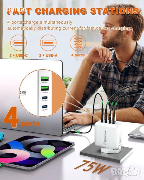 зарядно устройство осигурява висока изходна мощност от 75 W, което ви позволява