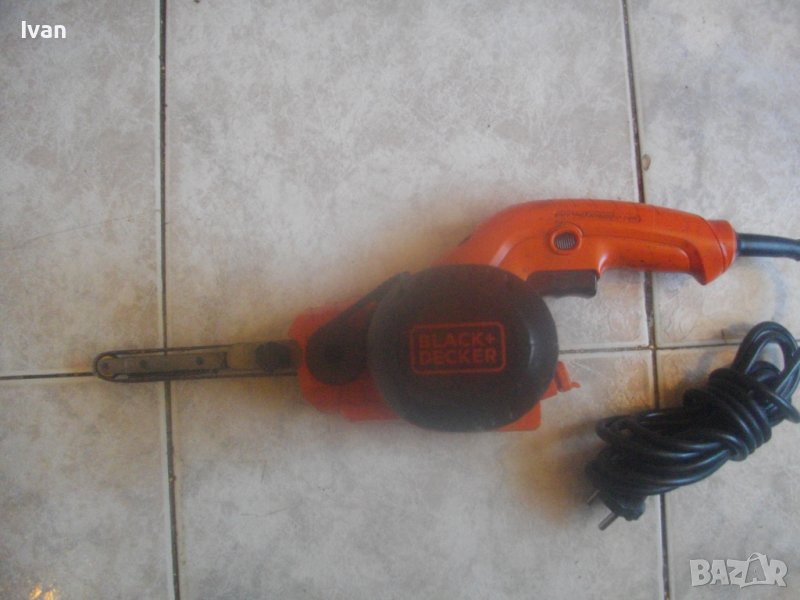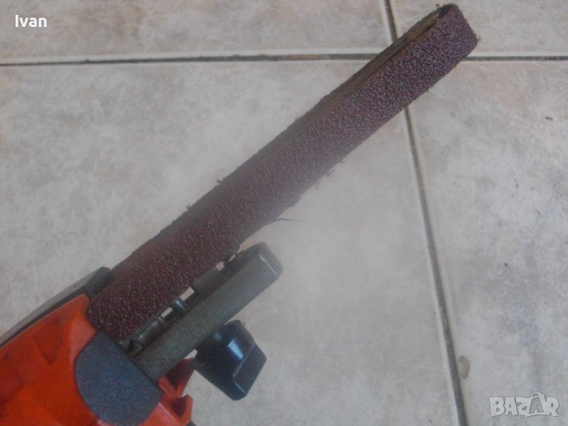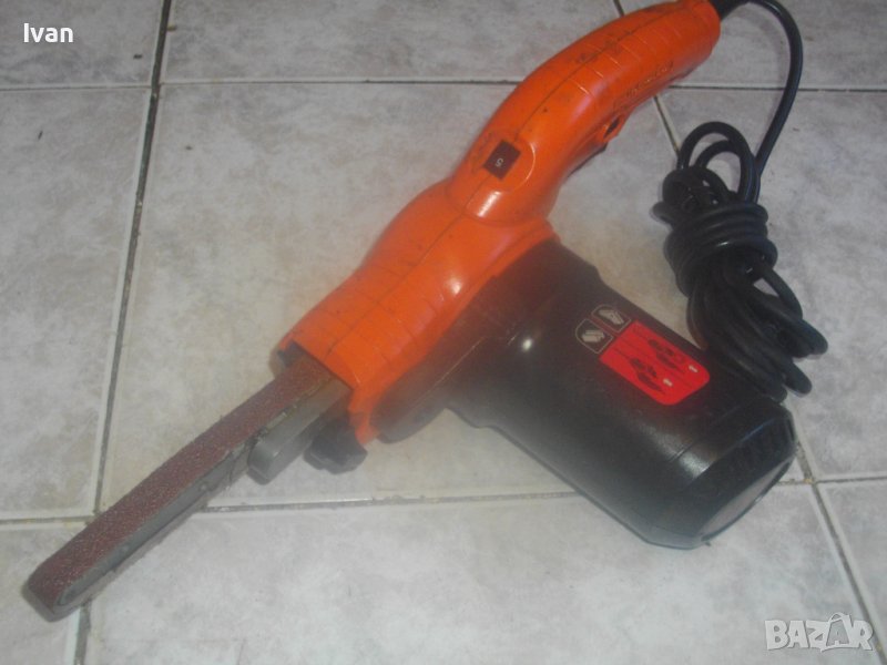 ОПИСАНИЕ на ел.пила - мини лентов шлайф - 159 лв. 350 ватов модел съвременен на Блек Декер. Марка и модел - Black Decker KA900E Type 1. Проиводство - Made in China на Black Decker England-Belgium. Запазен външен вид и отлично техническо/работно състояние на машината. За шлайфане посредством тясна 13 мм шкурка в труднодостъпни места. Мощност на машината - 350 вата, скорост - 900-1800 об/мин, руегулируеми с степени. Бърза смяна на шкурковия пояс. За шкурки/шкуркови ленти и пояси с ширина 13 мм. На машината има поставен 1 бр. нова оригинална английска шкурка пояс 13 мм. Автостоп на спусъка. Конектор на отпадъчна прах външен. Тегло на машината - 1,5 кг. РАЗПОЛАГАМ с други различни мини лентови шлайфове, машина тип ел.пила - различни модели на Блек Декер, с различна мощност 300-400 вата, на цени 159 лв/1 бр.