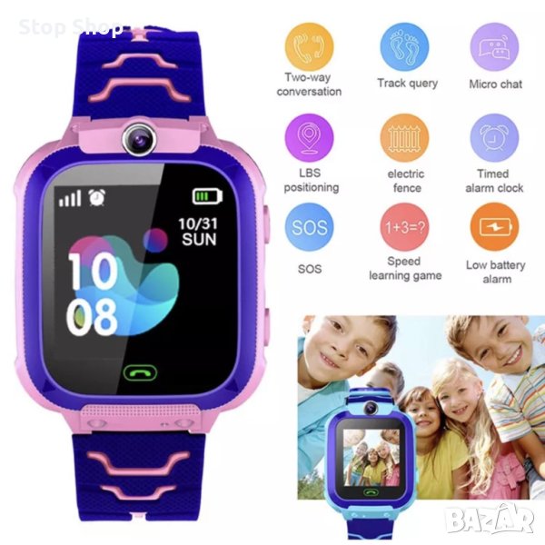 Детски интелигентен часовник Q12, розов, 1.44 Inc, GPS и функция на телефона, Wi-Fi, местоположение на камерата, шпионско наблюдение, водоустойчив, прах и удари, сензорен екран, SOS бутон, периметър за безопасност, история на местоположението на GPS, безшумен режим
