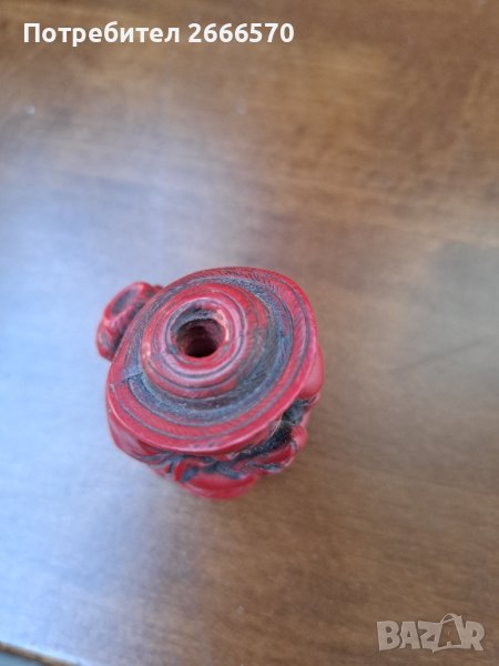 много стара ботилка за енфие може да се използва по предназначение , според мен е червен корал матерала от който е изработена , 7 см височина