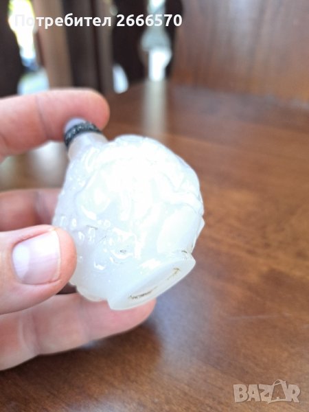 стара китайска енфие ботилка за енфие или други прахообразни субстанций изработена от опалово стъкло , капачката е опал , обкова сребро 8 см висока 18 век