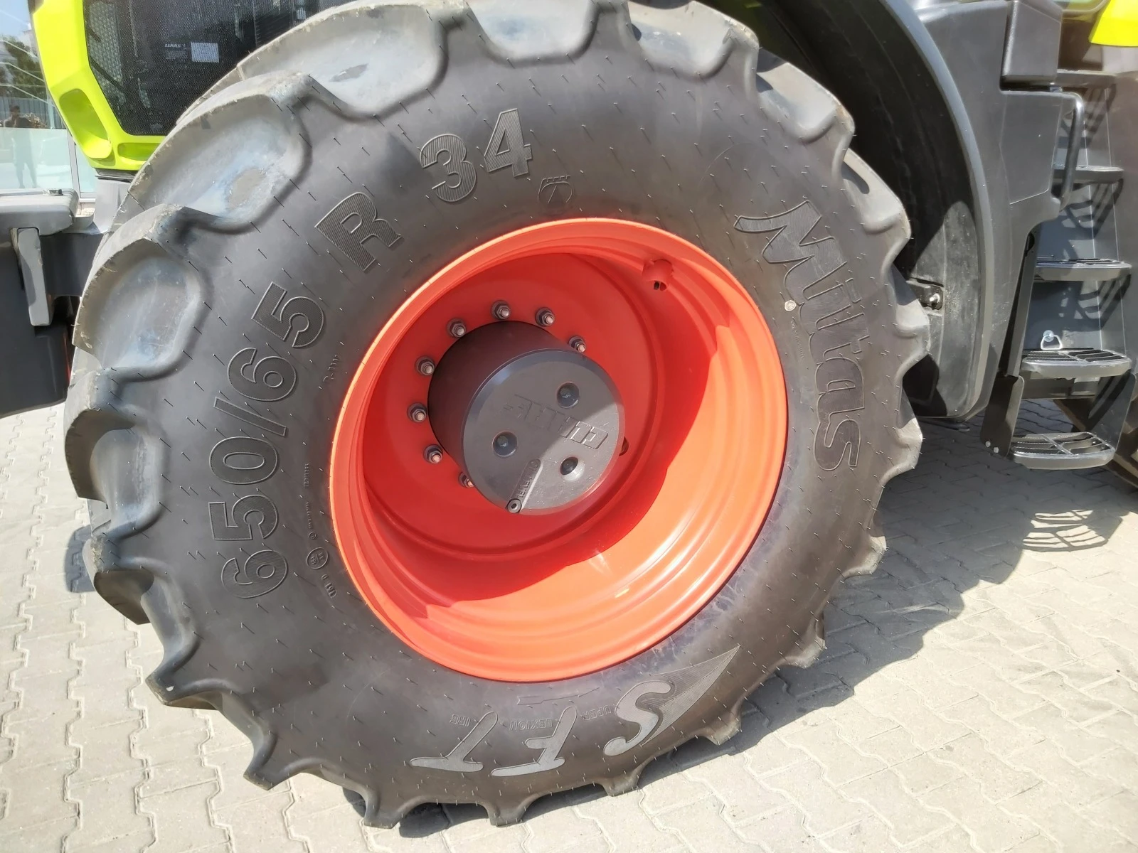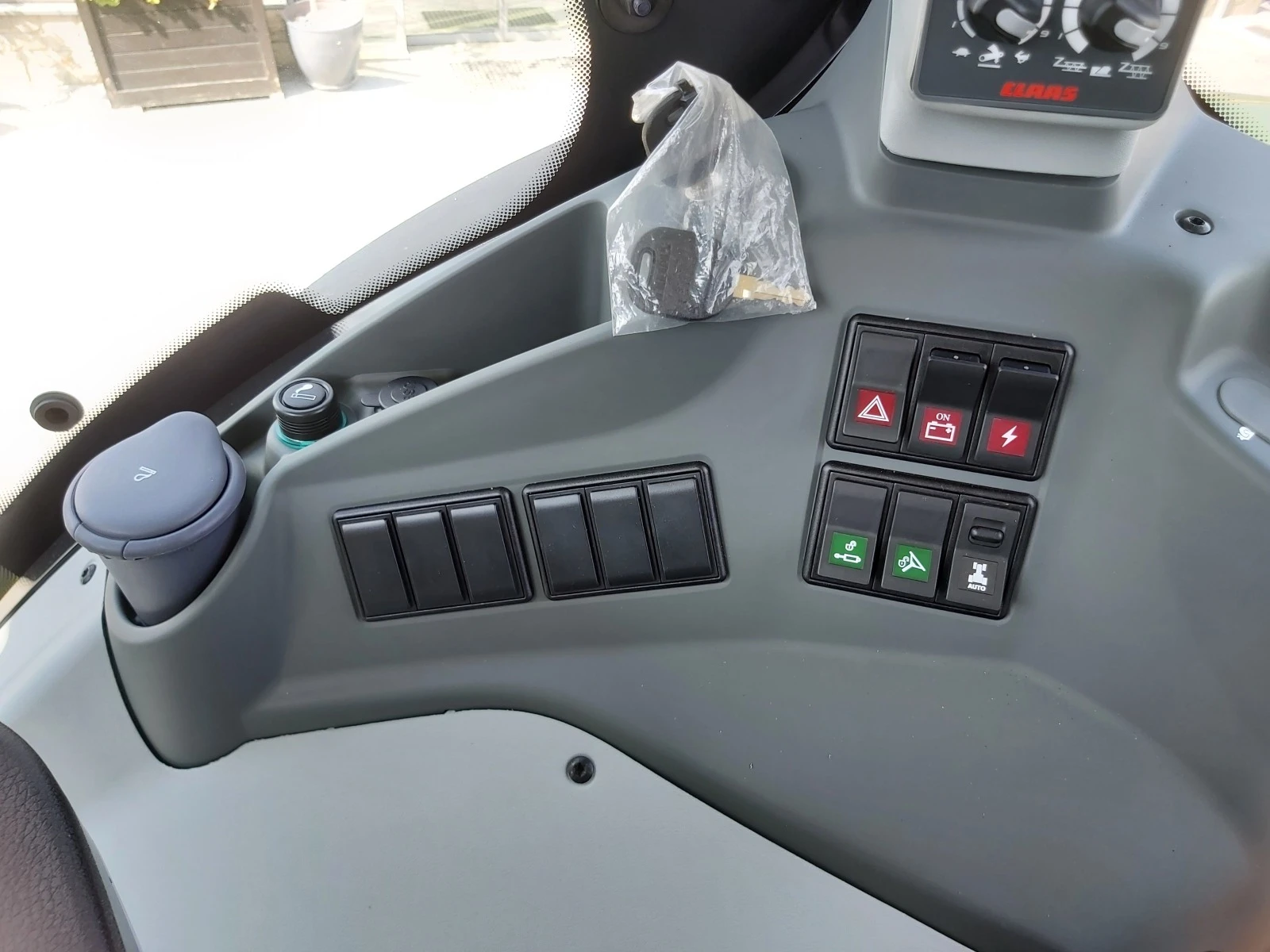 Година на производство: 2022 г. , Моточасове: 5 мч Двигател 6-цилиндров FPT двигател с макс. 353 к. с. , макс. 1695 Нм (ECE R 120) и работен обем 8, 7 литра Резервоар за гориво макс. 640 литра Безстепенна скоростна кутия CMATIC (CVT ZF ECCOM 3. ) + CSM 2 степени памет на оборотите на двигателя, CEBIS Максимална скорост 40 км / ч и мин. 0, 05 км / ч Междуосие от 3, 15 м и товароподемност от макс. 10 950 кг Предни тежести 1500 кг. Задвижване и двигател Стандартен преден мост Компресор за въздух Голям горивен предфилтър, отопляем Главен превключвател на батерията Студен старт на двигателя до -38 C (нагряване на: охлаждащата течност (220V), Трансмисионно масло + свързващ кабел) Хидравлика Хидравлична система LS 220 л/мин, 200 бара Хидравлични разпределители 4 двойки, електрохидравлични пропорционални, с Връзки Power Beyond Задна навесна система Задна навесна система кат. 4 с механична трета точка и механични стабилизатори на долните връзки Долен теглич, кат. 4 Пневматични спирачки 2 кръга Заден ВОМ 540 ECO + 1000 об. /мин - 6 и 8 шлица 1 3/8 " и 20 шлица, 1 3/4 " Кабина и комфорт Меко окачване на кабината 4-точково CEBIS контролен бординформатор Седалка за водача с пневматично окачване, въртяща се Седалка за пасажер с предпазен колан Кабина с климатик Запалка и пепелник 2 високи фара, А-колона Осветление за широк товар 4x халогенни пътни светлини, 2x халогенни работни светлини, капак Халогенни работни светлини: 4x покрив, отпред и 4x покрив, отзад Работни светлини, халогенни: 2x предни, 2x задни, 2x степенки Огледала за обратно виждане, механично 2х Релси за поставяне на терминали от дясната страна Чистачка за задното стъкло Допълнителни слотове за интерфейс + USB Системи за подпомагане на водача GPS Ready подготовка за автопилот система ISOBUS оборудване задна букса, пълно окабеляване Управление на данни CLAAS LTE модул за комуникация CLAAS Remote Service Разширен TELEMATICS базов лиценз за 5 година: Гуми ELC с радарен сензор и контрол на приплъзването Предни гуми: 650/65 R34 Mitas SFT / фиксирана джанта Предни калници, шарнирни, 720 мм Задни гуми: 710/75 R42 Mitas SFT / фиксирана джанта Тежести на задните колела, 1352 кг за гуми 42/44" . 2 x фланец за бързо освобождаваща се ос (единично колело) 1 въртящ се буркан, ляв