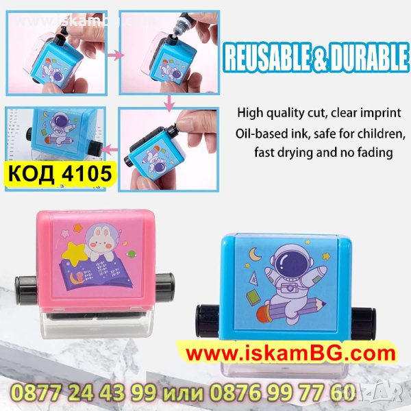Изчислителният печат предоставя 10 различни линии, които могат да се въртят и регулират. Направен за многократно ползване с малки размери, удобен за пренос. Мастилото, което получавате в опаковката служи за допълване на печата за изчисления. Мастиленият отпечатък изсъхва бързо и не избледнява без да се размаже. Детският изчислителен печат е подходящ за деца на всяка възраст.
