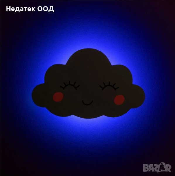 Декоративна дървена стенна лампа, синьо усмихнато балонче с led лента със синя светлина и бутон за включване/изключване. Работи с 2 батерии AAA (не са включени).