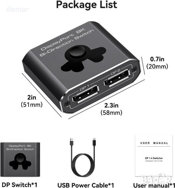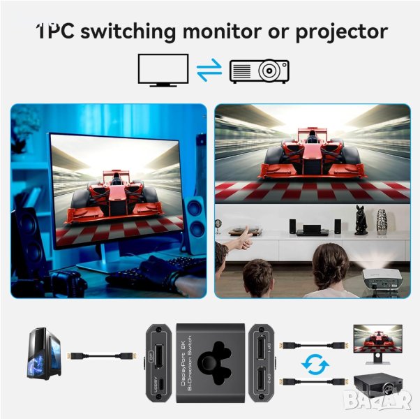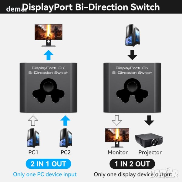 DP 8K 60Hz Селектор, Двупосочен превключвател на дисплей порт