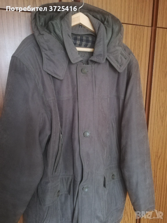 Зимно яке, ново,със сваляща се подплата и качулка и много джобове.Размерът е 54, както е посочен на етикета, но отговаря на 52 размер, защото подплатата уплътнява