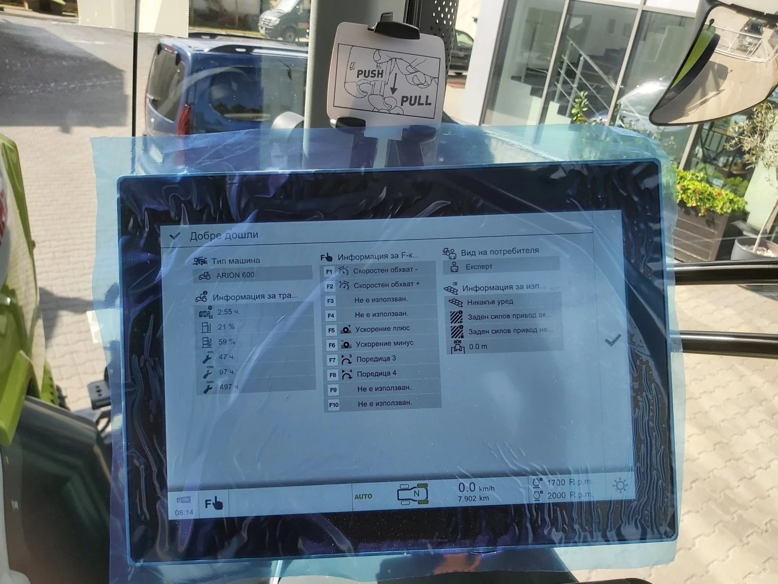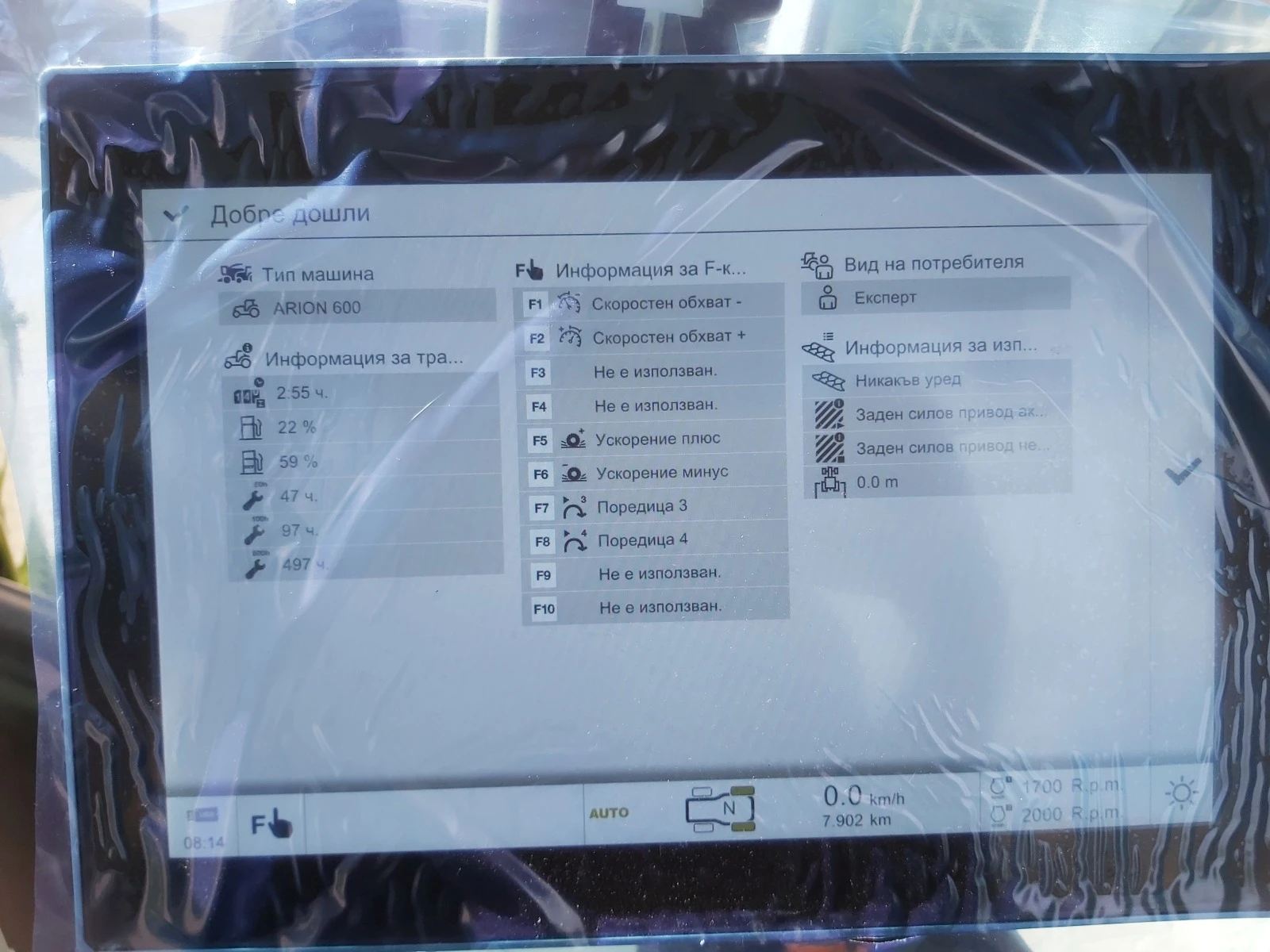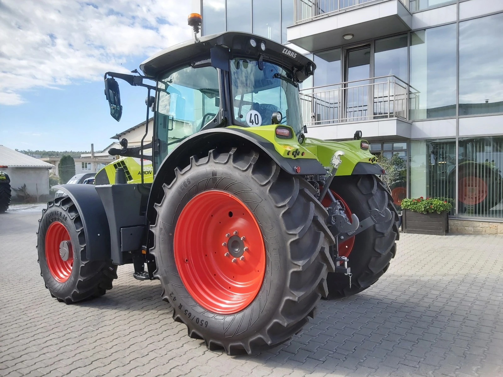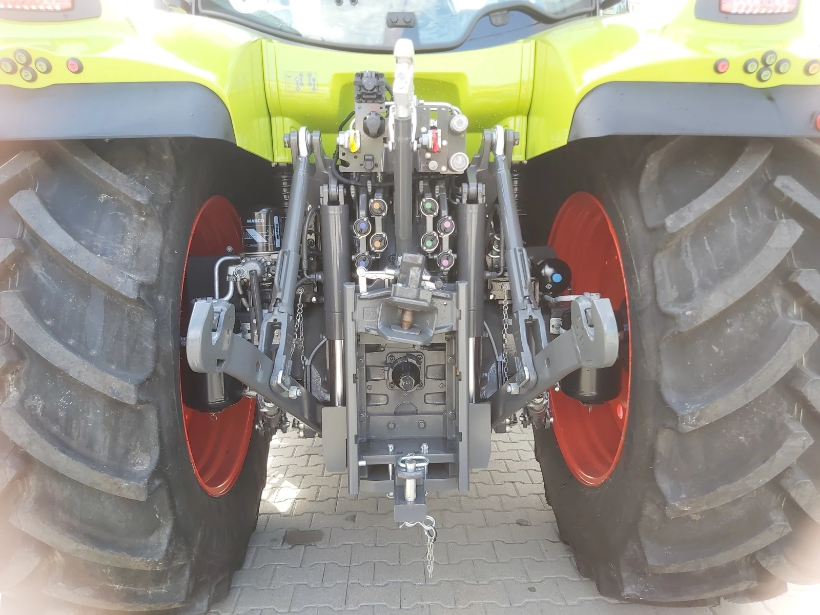 трактор с 6-цилиндров DPS двигател с максимална мощност 185 к. с. , макс. въртящ момент. рев. 754 Nm (ECE R 120) и работен обем 6, 8 л Резервоар за гориво 285 л Безстепенна скоростна кутия CMATIC + памет на оборотите на двигателя memory PLUS CSM Максимална скорост 40 км/ч и мин. 0, 05 км/ч REVERSHIFT електронно превключване на заден ход Междуосие 2, 82 м и максимална товароносимост 8000 кг Задвижване и двигател PROACTIV активен преден мост с мокри мултидискови спирачки CMATIC с памет за оборотите на двигателя (CEBIS) Стандартно управление на трансмисията Задна ос стандартна Дизелов предфилтър (водоотделител) Главен прекъсвач на батерията, електронен Резервоар за гориво 285л Хидравлична система Load Sensing хидравлика с аксиално-бутална помпа (150 л/мин) 4 хидравлични клапана, електрохидравлични пропорционални (CEBIS) С Powerbeyond сензорни връзки(LS) Преден навес Предна навесна система CLAAS 3. 0 с отбиране на вибрациите CLAAS Предни тежести 600 кг Външни бутони за управление на предния навес Странични релси за монтаж на челен товарач Заден навес Електронно управление на задния навес ELC Заден навес с увеличен капацитет на повдигане Категория 3 в долната част 2 автоматични долни стабилизатора Механична трета точка на задния навес Теглич кат. 2 Автоматична скоба и сферичен теглич с бързо регулиране на височината Комплект 3/3 Пневматична спирачна система (2 кръга) ВОМ 540 + 1000 Карданен вал 1" 3/8 6 шлици + 21 шлици 1 3/8 Кабина и комфорт 4 колонна кабина с 4-точково окачване CEBIS бордови компютър с тъч-скрийн дисплей ELECTROPILOT Пневматична седалка, плат, въртяща се Пътническа седалка с предпазен колан Кожен волан Кабина с климатроник Mp3 radio, USB + SD Запалка и пепелник 4x халогенни пътни светлини, 2x халогенни работни светлини, капак LED работни светлини пакет Basic 2x високи фарове, A-колона Стандартни задни светлини, LED с предупредителни знаци Задно стъкло за 4 колонна кабина Чистачка за задно стъкло Механично огледало, с широкоъгълно огледало Релсa за терминал на десен страничен прозорец Допълнителни интерфейсни букси Системи за подпомагане на водача ISOBUS активиран софтуер на CEBIS терминала ISOBUS подготовка, задна букса Възможност за дооборудване със система за автоматично управление SVEAVERKEN и оборудване за RTK сигнал с точно на работа до 2 см Активиран софтуер на терминала TASK CONTROL BASIC Модул за комуникация CLAAS LTE Гуми: Задни гуми 650/65 42 Mitas фиксирана джанта Предни гуми 540/65 R30 Mitas фиксирана джанта Предни калници 540 мм Уширения и разширения на задните калници 2, 75м 2 въртящи се LED буркана