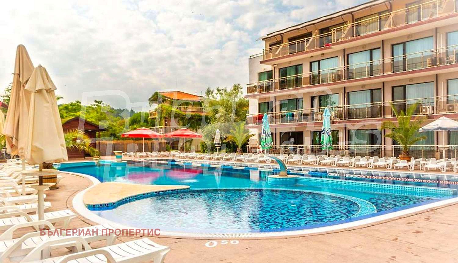 беседка за отдих. Във фоайето се намира лоби бара, както и просторна част с мека мебел. Големият басейн с два плувни коридора по 25 м за желаещите да плуват, се намира до плажа, има детска част, лагуна и удобни шезлонги. Може да се насладите на широка гама от възстановителни процедури: сауна, стая за релакс и почивка, масажи, солариум. Комплексът дава възможност за практикуване на водни спортове като сърфинг, джет, яхта, водни ски, риболов.