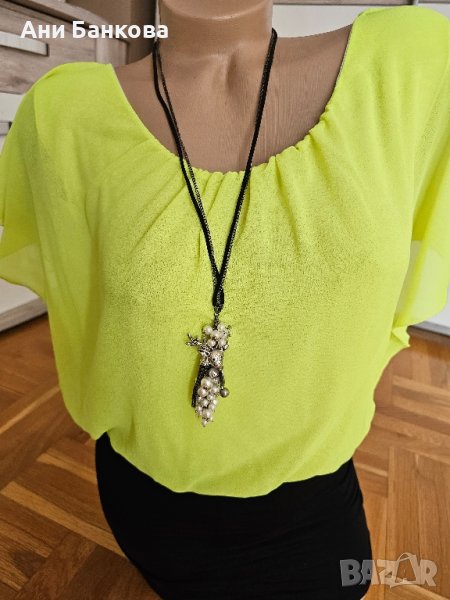 Нова дамска рокля. Няма размер. Става за С-М-Л. Разтеглива е. Колието не е налично.