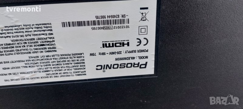 борда е гарантирано работещ Демонтиран от телевизор Prosonic модел. 40LED6009SW със счупен дисплей VES400UNDS-2D-N12 тесвана от нашия техник