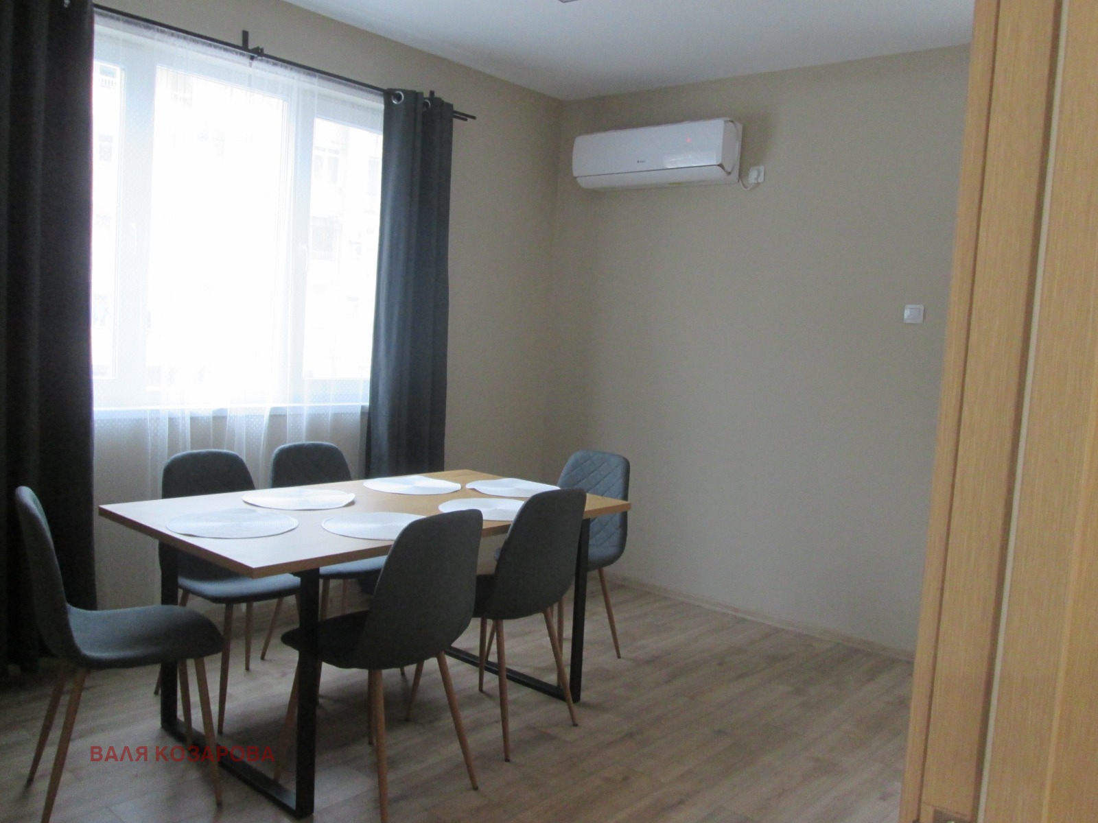 Оферта 2119 Отдава под наем тристаен апартамент след основен ремонт и обзаведен с нови мебели. Намира се на тихо място на 5мин. от Медицинския университет и Окръжна болница. Състои се от хол, две спални, трапезария с кухненски бокс, две тераси, баня с тоалетна и още една тоалетна. Отоплението е с висок клас климатици, изолация. [email protected]