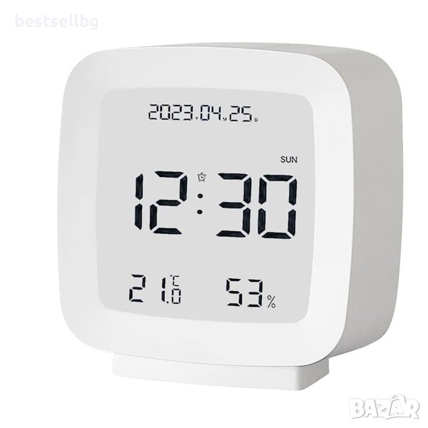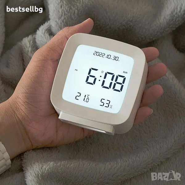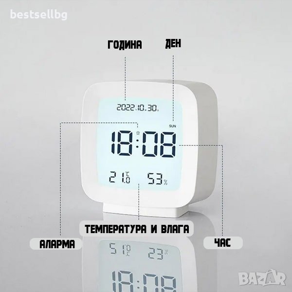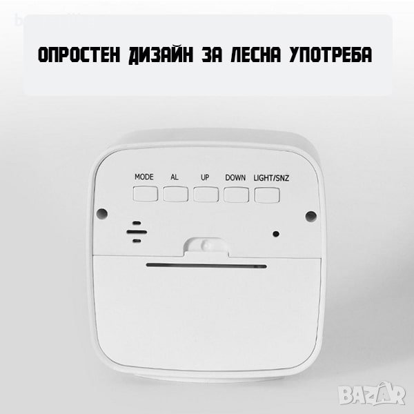 Представяме ви часовник с многофункционален дизайн, който ще ви зарадва със своите практични възможности и стилен външен вид. Вече не се нуждаете от множество устройства за да следите времето, алармите, влажността и температурата в стаята. Ето по-подробно описание на този интелигентен часовник:
