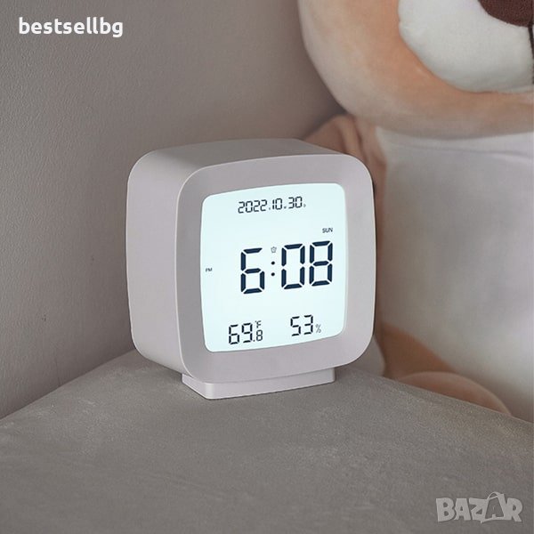 Часовникът разполага с LCD екран с подсветка, който може да се активира чрез гласово управление и докосване. Меката светлина, която излъчва, може да служи и като нощна светлина, когато ви е необходима. Така винаги можете ясно да видите времето и да осветите тъмнината в стаята.