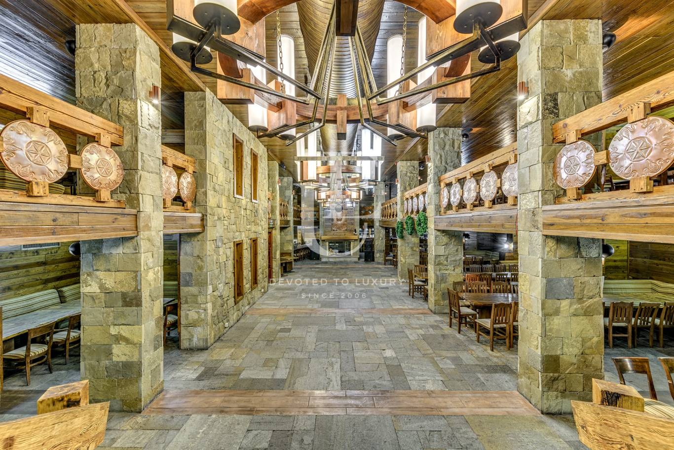 Хотелът е проектиран в алпийски стил с великолепна комбинация на камък, дърво и мед, които създават усещане за топлина и уют. За комфортният престой на гостите са изградени, СПА център - сауна,парна баня, закрит басейн, детски басейн и джакузи, фитнес, ски гардероб, комферентна зала.