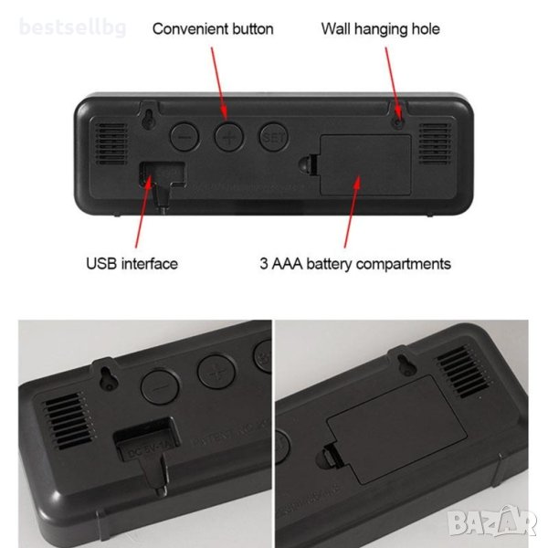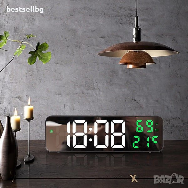 Този изключителен цифров часовник не само показва точното време, но съчетава няколко функции, които го правят перфектен за декорацията на вашия дом или офис. Снабден с LED дисплей с висока разделителна способност, часовникът показва следните информации: