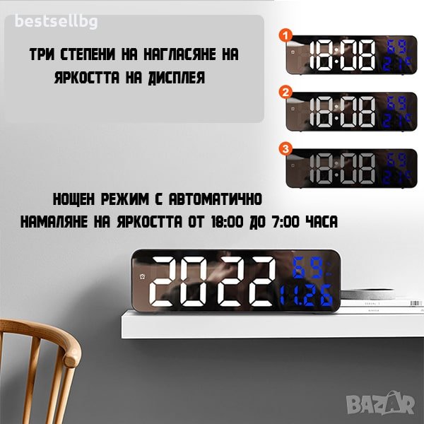 LED цифров стенен или настолен часовник с регулируема яркост: