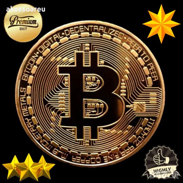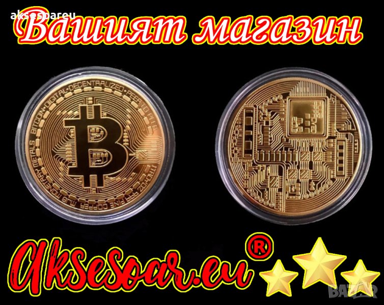 на Bit Coin криптовалутата метална физическа монета с пластмасова кутия колекционерска