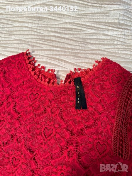 Елегантна рокля, извайваща тялото от висококачествена италианска дантела. Цвят: червен. Дължина до коляното. Марка Imperial. Без следа от носене.