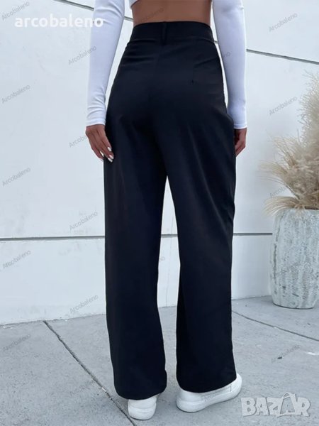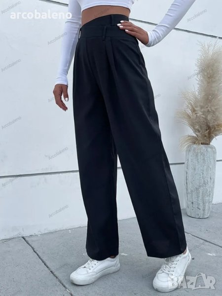 Дамски моден едноцветен ежедневен панталон с висока талия