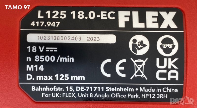 1. Безчетков ъглошлайф: FLEX L125 18.0-EC