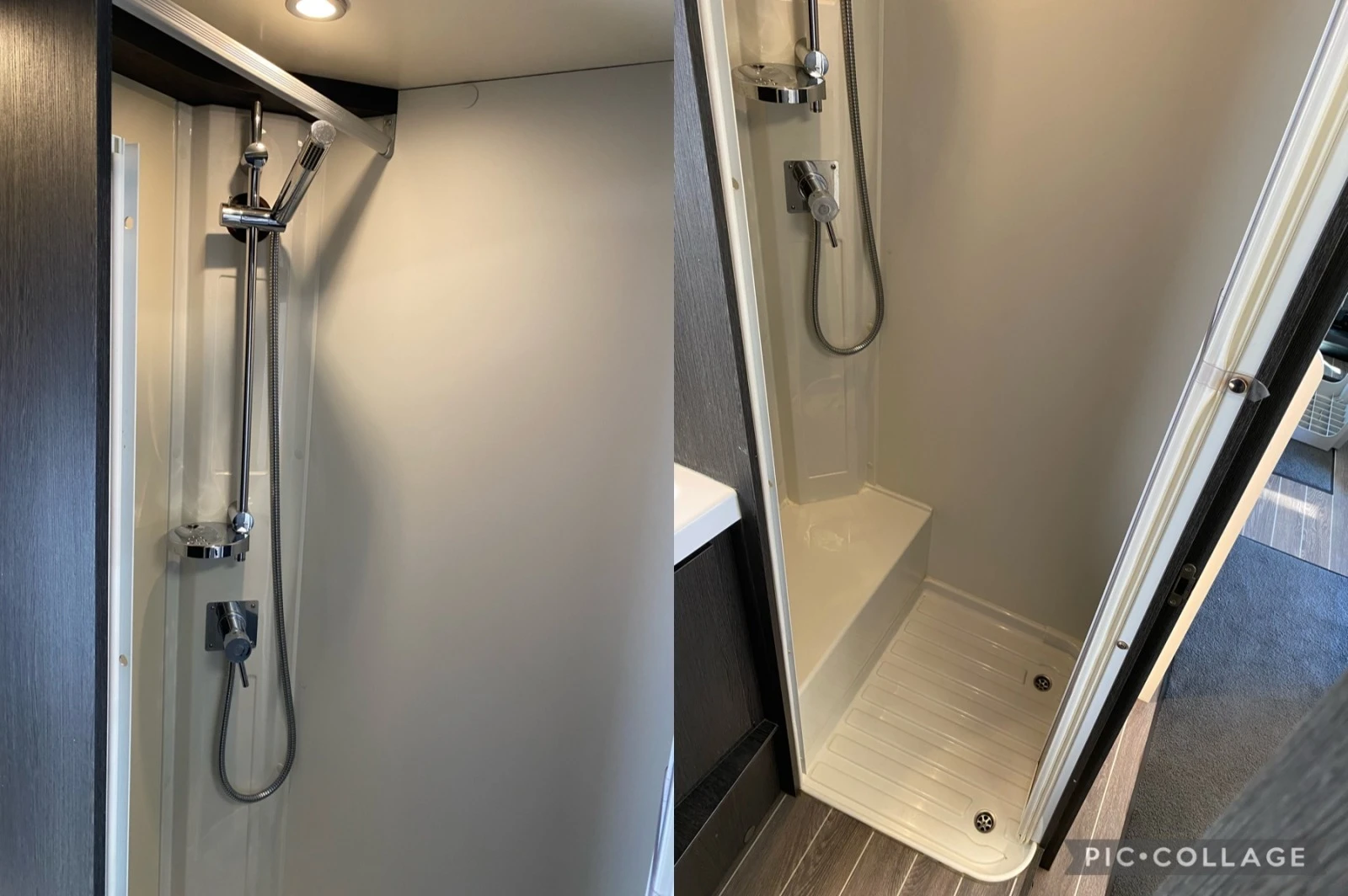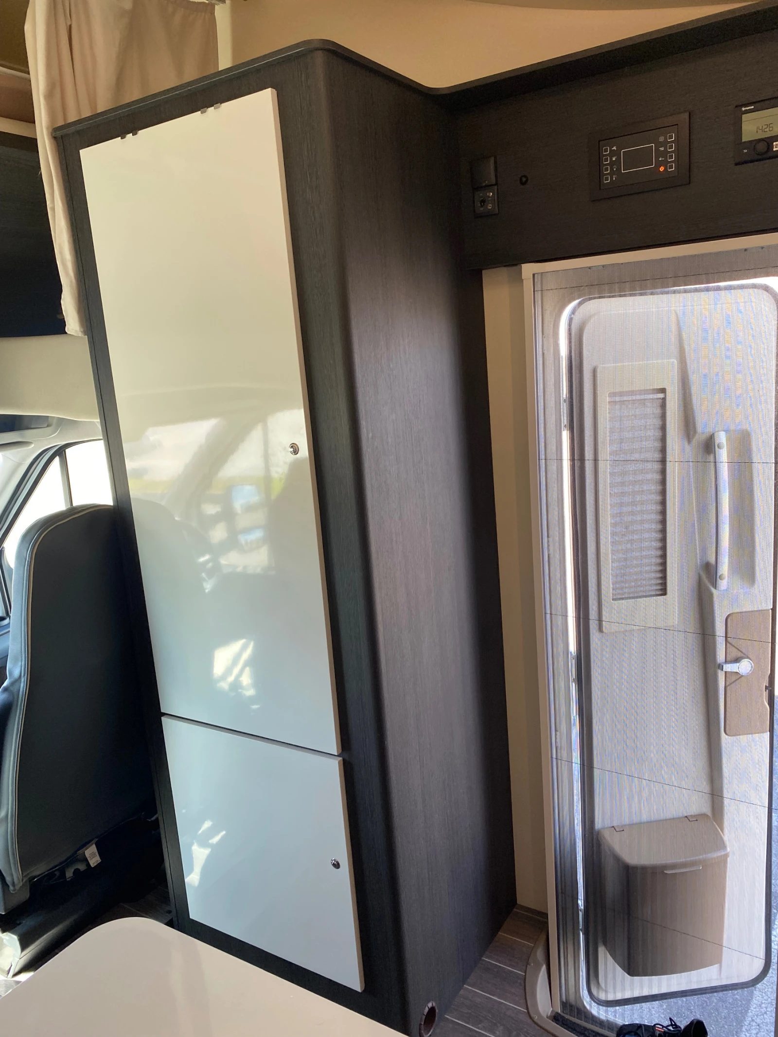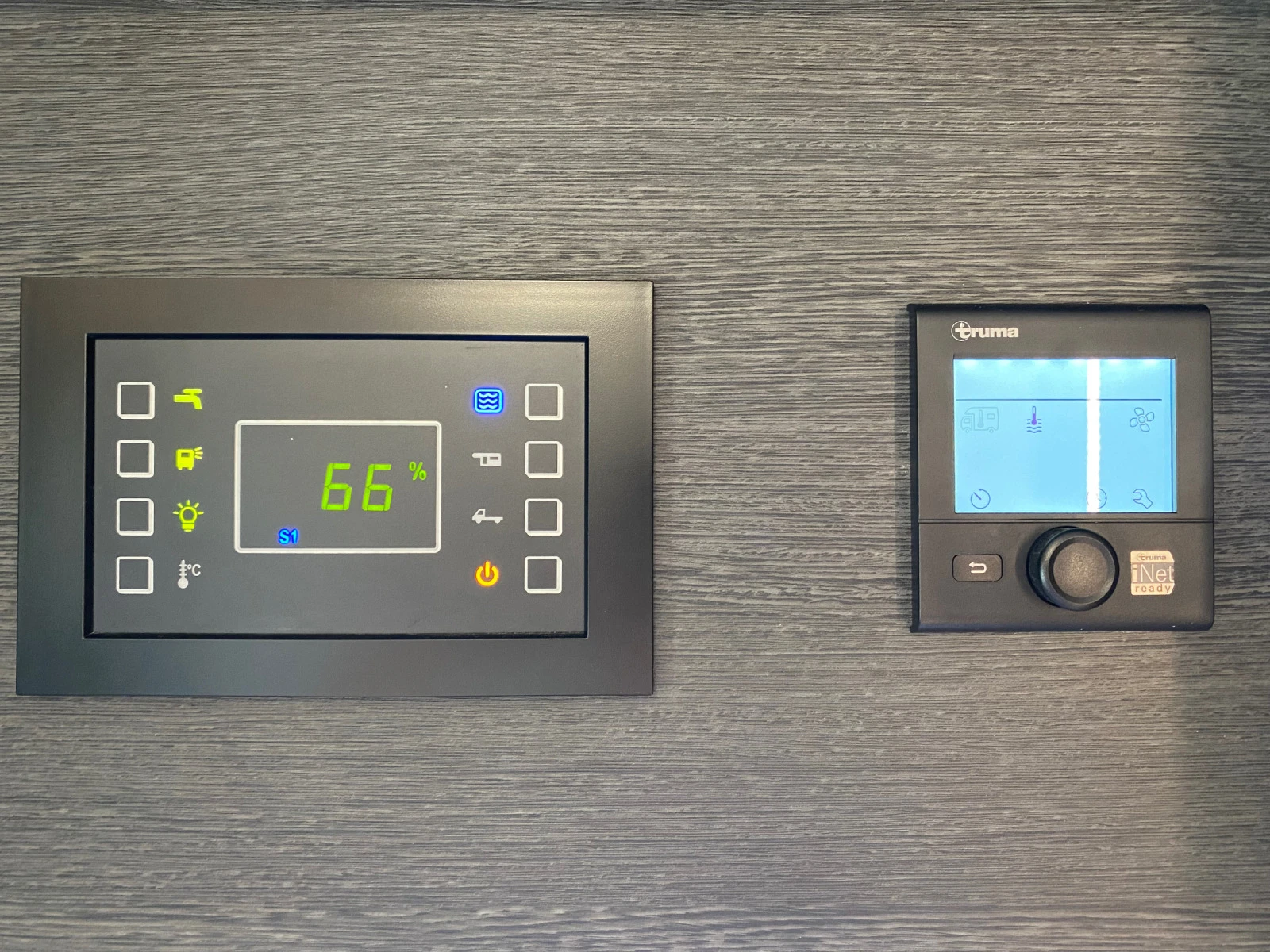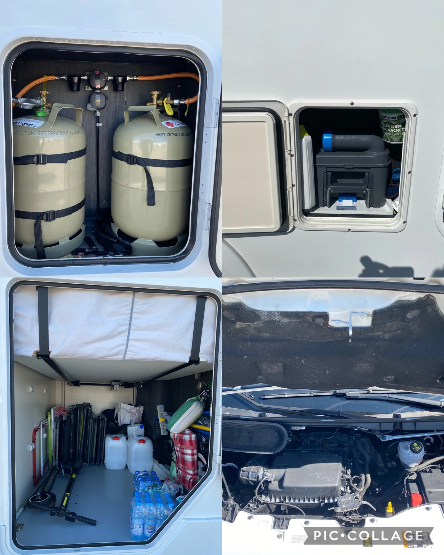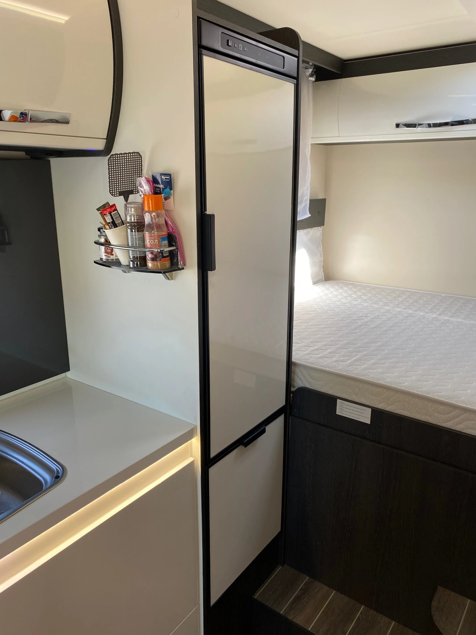 система за нивелиране - TESA Телевизор Toshiba 24 incha, Smart, Android 12V Багажник за 4 велосипеда Външно LED осветление 4 м. Резервоар за чиста вода 120 литра Резервоар за сива вода 100 литра Модерен кухненски бокс , автоматичен комбиниран хладилник 135 литра, мивка и газови котлони. Място за две газови бутилки + бърза връзка за барбекю Гараж с две врати за достъп и отопление Щори, комарници и пердета на всички прозорци и комарник на входна врата.