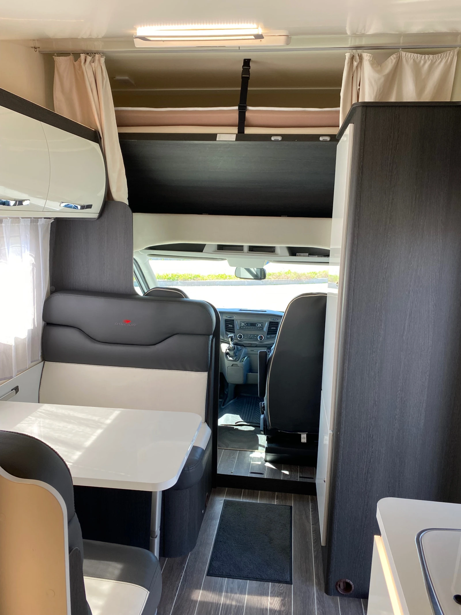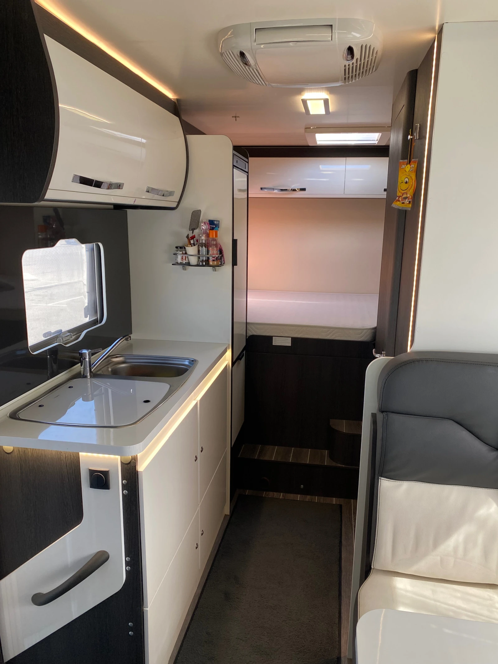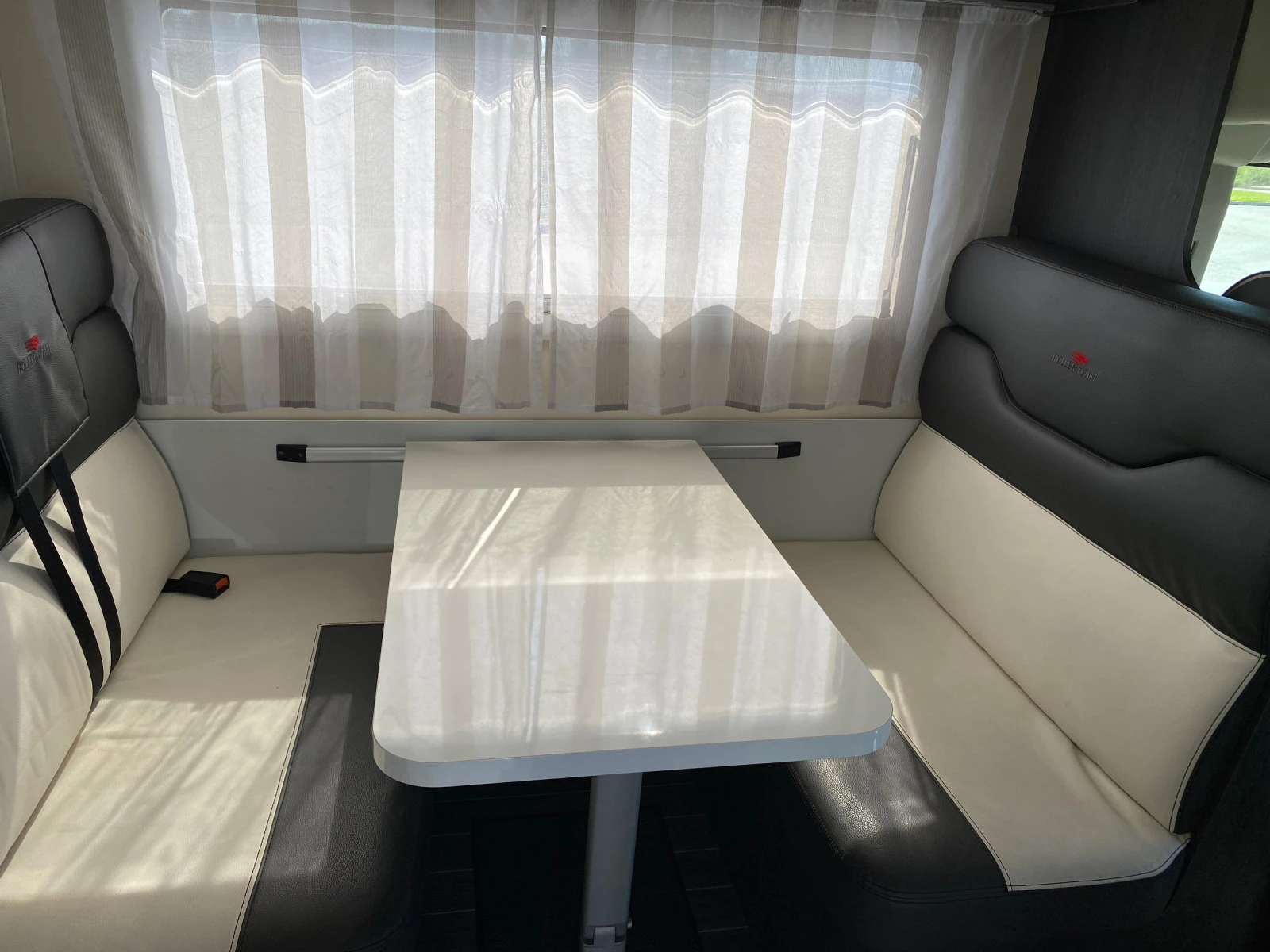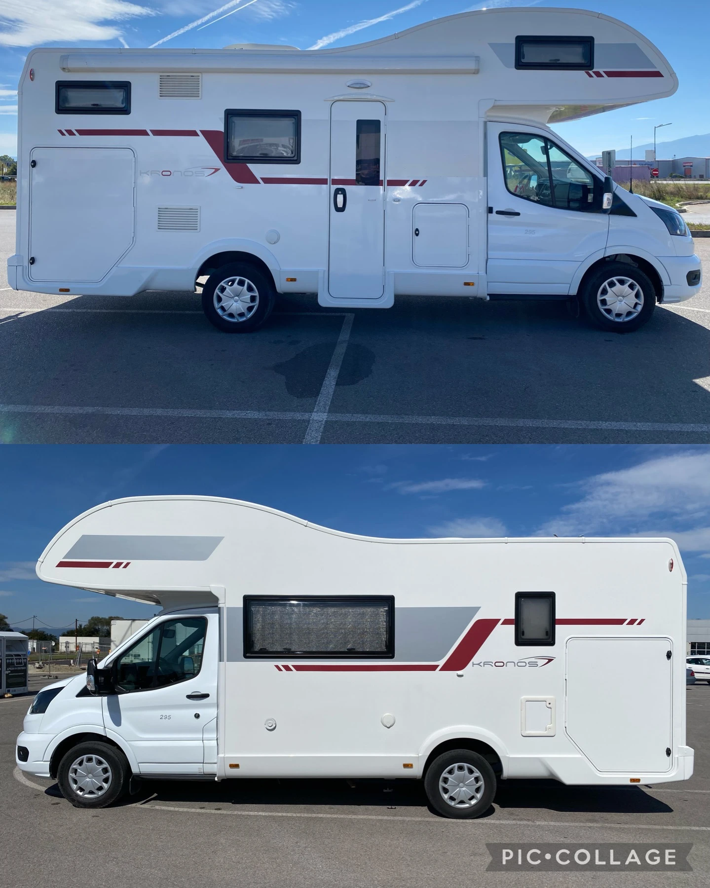 Roller Team kronos 295 M Шаси Ford Transit Двигател 2. 0 , 130к. с. Euro6temp Дължина 6. 99м Ширина 2. 35м Височина 3. 15м Теглич Летни и зимни гуми Брой места за пътуване - 4 Брой места за хранене 4 Брой места за спане - 4 Климатик към двигателя, круиз контрол, дневни светлини Въздушни възглавници за водача и пътника Електрически странични огледала Камера за заден ход Радио USB Мултиволан с управление Кожен салон Климатик в жилищната част Панел TRUMA CP PLUS iNet 100% LED осветление Амбиентно осветление Напречно легло в задната част Второ двойно легло в алковен над водача Голяма баня с тоалетна + SOG ( вентилационна система ) + външен душ със смесител Тента THULE 4 м. с LED осветление 4 м. Отопление на газ - Truma Соларен панел Автоматична